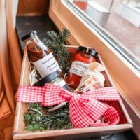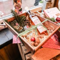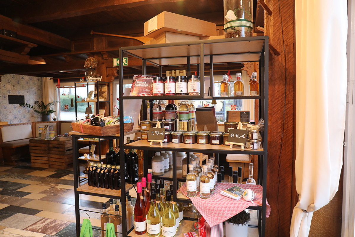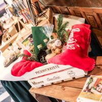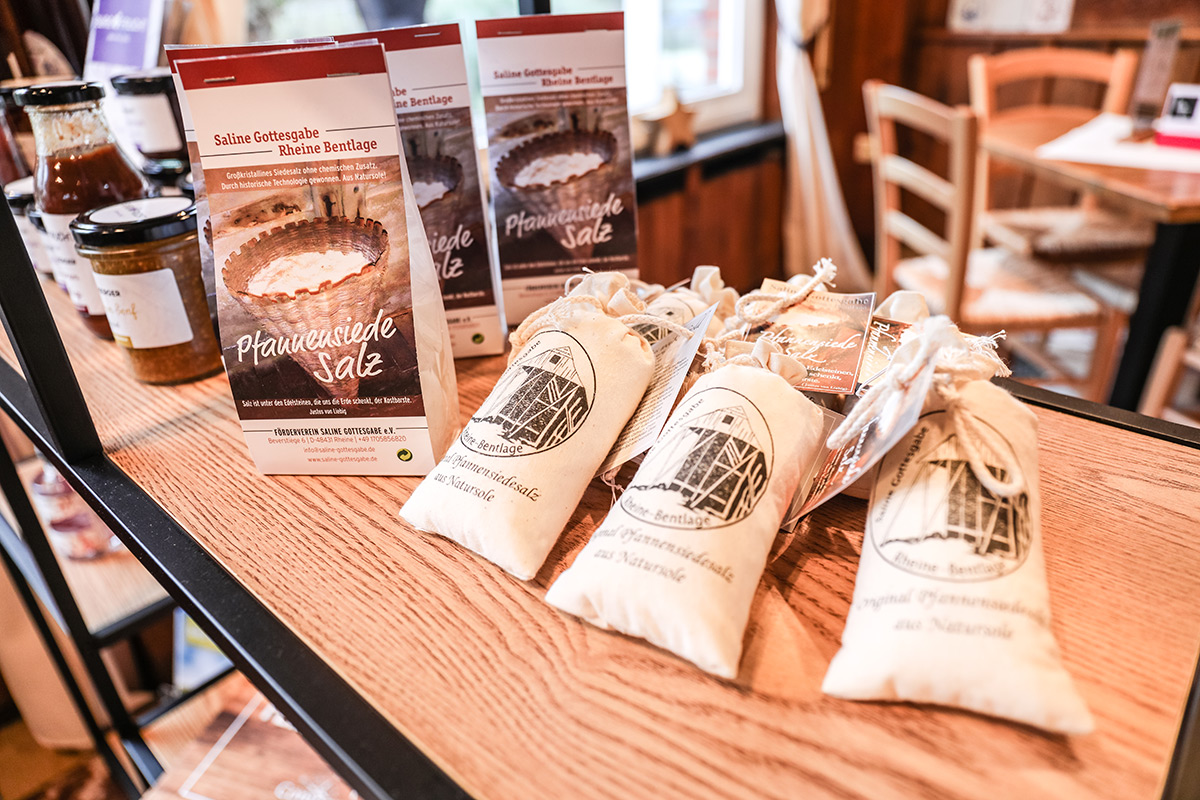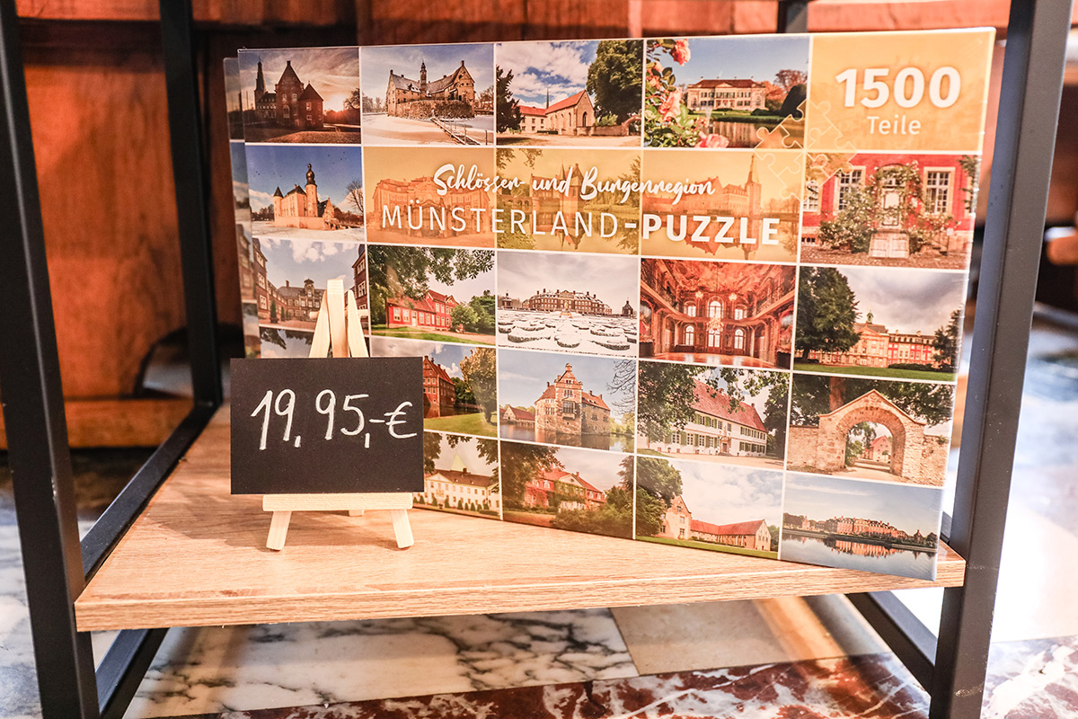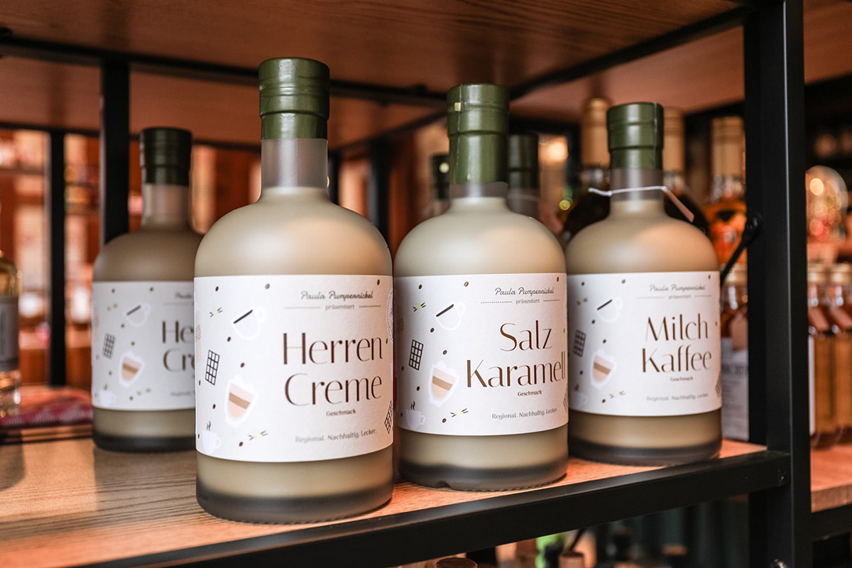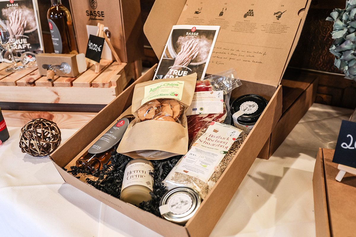 Der Münsterland-Shop oder wie wir ihn gerne nennen » #StrandHofladen «. Der ging natürlich pünktlich zur Vorweihnachtszeit mit allen regionalen Lieblingssachen an den Start. Unsere ländlich-rustikale Präsent-Holzkiste steht zum Befüllen bereit. Und natürliche jede Menge leckerer und nützlicher Input. Sie wählen, wir packen ein und verpacken. Hundertprozentiger können Sie das Münsterland nicht verschenken." Der Mensch liebt Anschaulichkeit, darum lassen wir uns ein paar Dinge vorführen. Die Genussexpertin Paula Pumpernickel hat die Münsterländische Herrencreme in ein fein balanciertes Likör-Getränk aus Schokolade, Vanille und Rum verwandelt. Sasse aus Schöppingen steuert seinen legendären Lagerkorn bei. Die Münstersche Marmeladenfaktur versüßt den Tag durch Feige, Birne, Portwein und andere niederknieenswerte Kompositionen. Vom Obsthof Korn liegen Apfelchips bei. Undsoweiter, sagen wir an dieser Stelle, denn der Appetit ist längst geweckt und die Liste wäre lang.