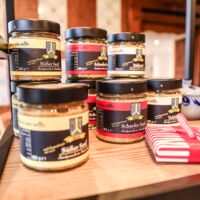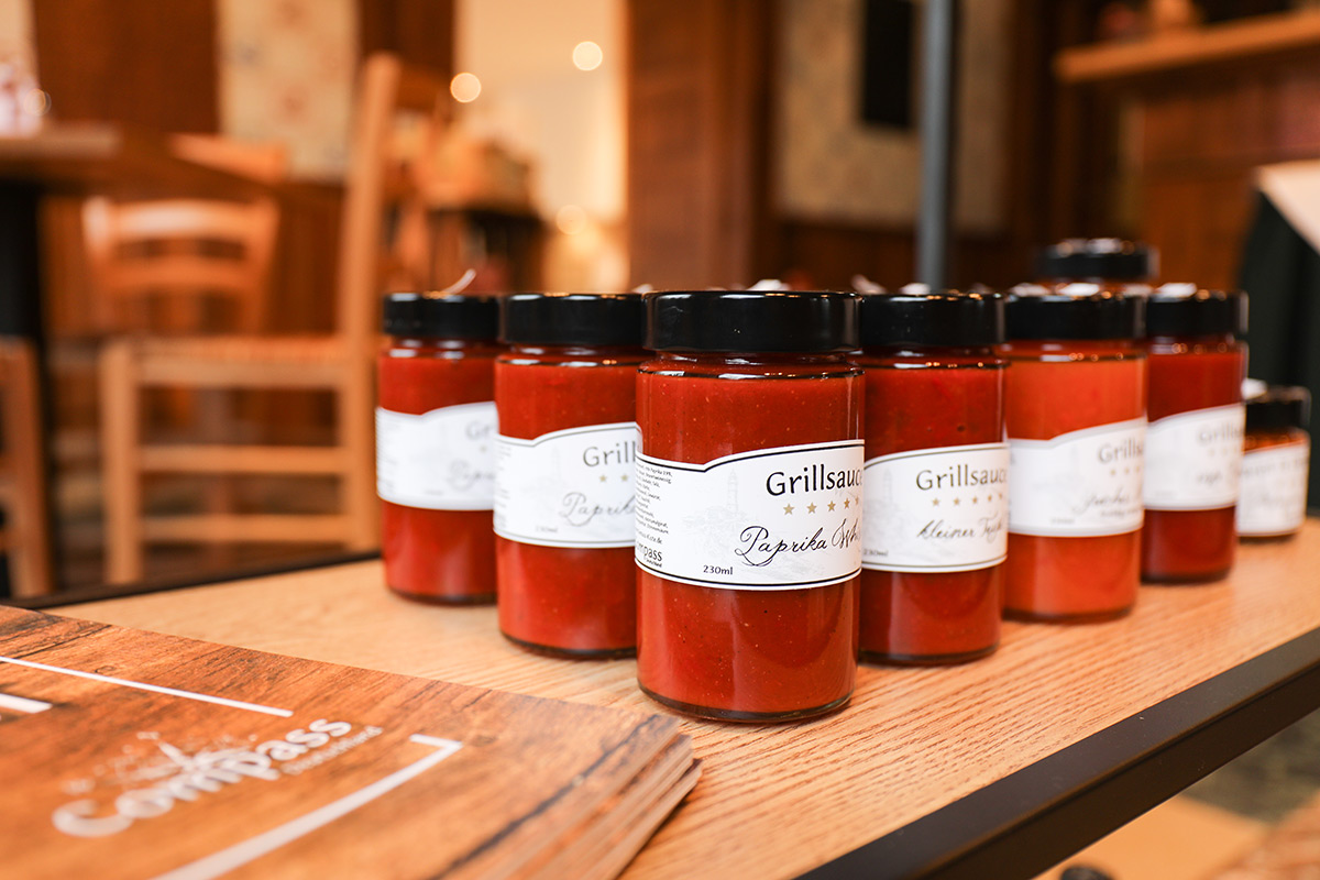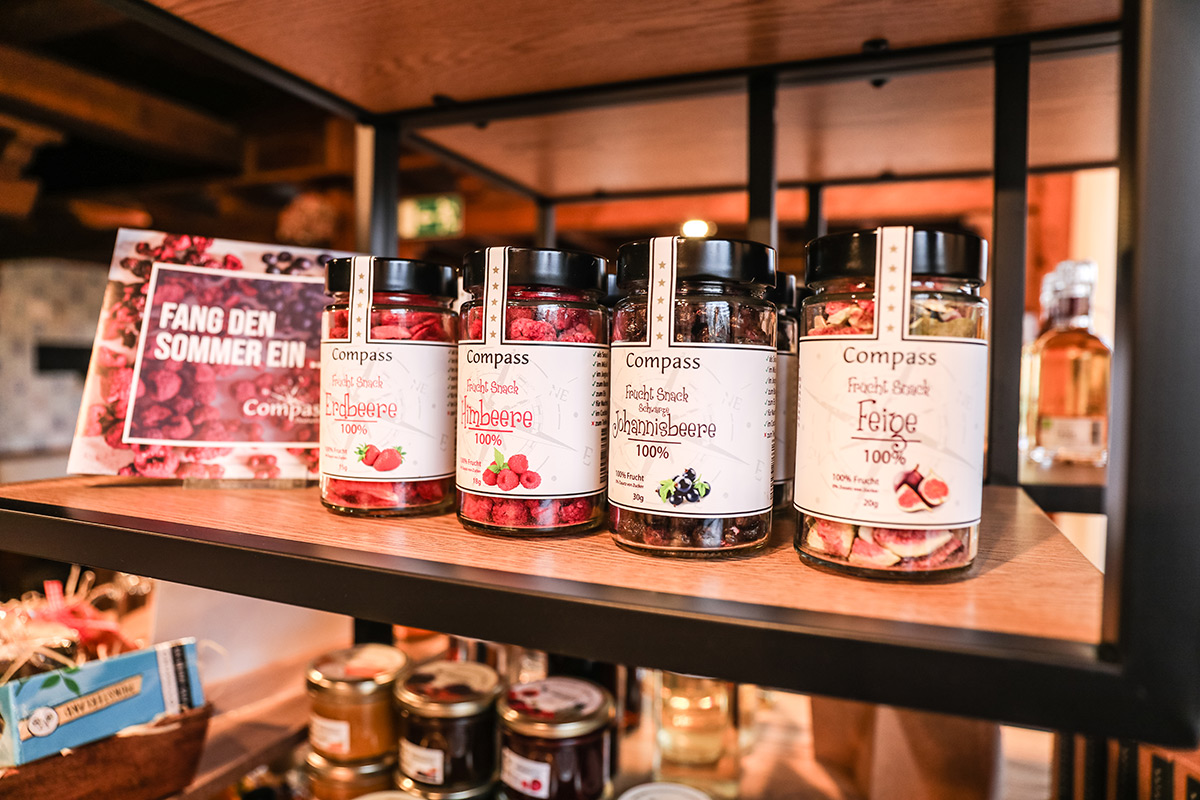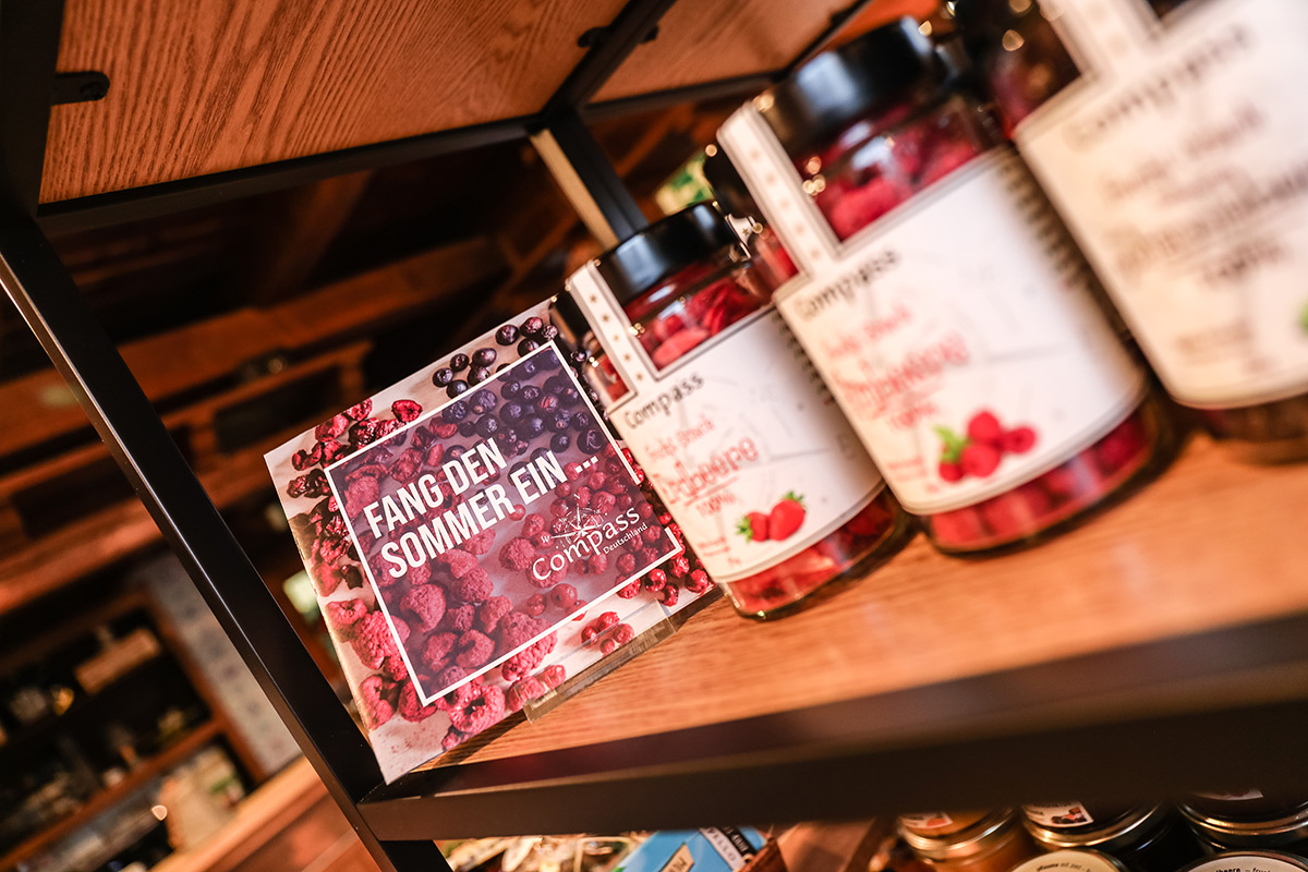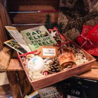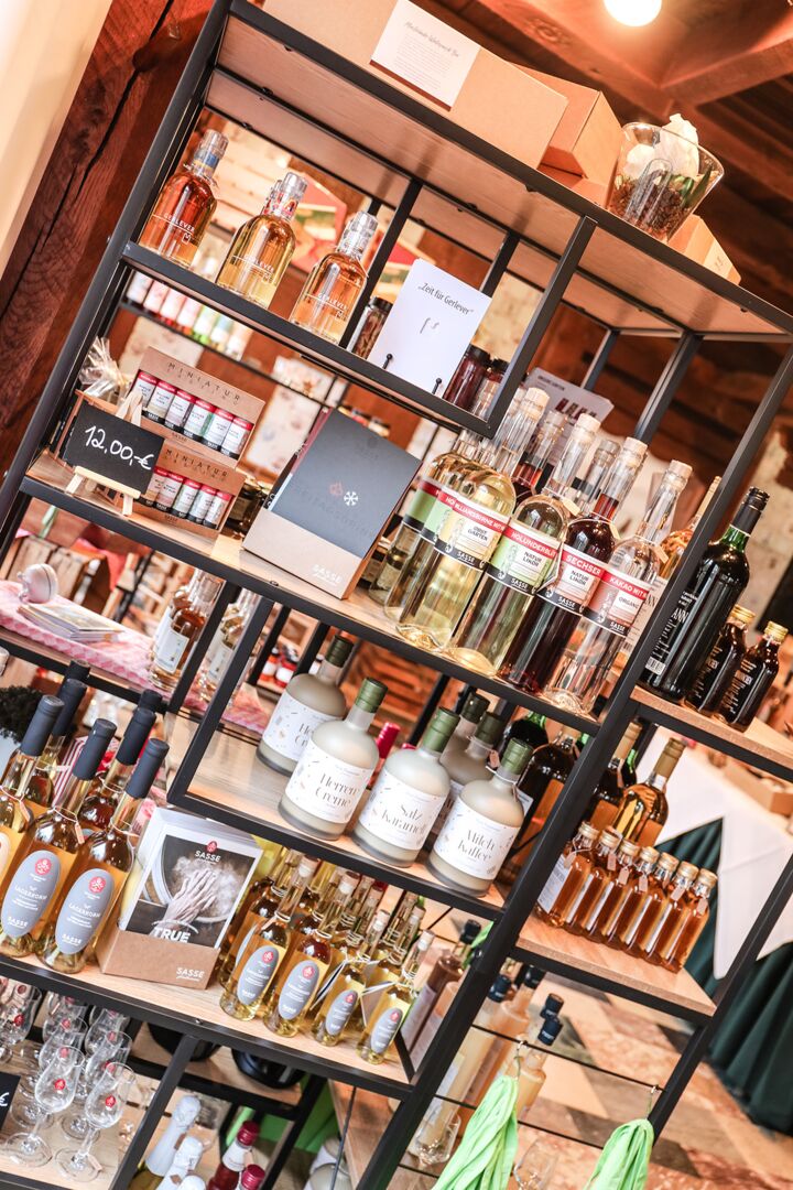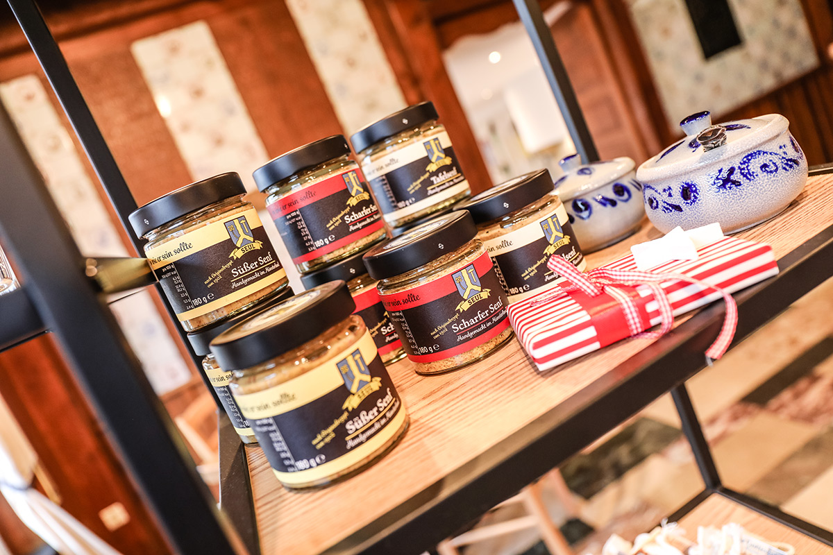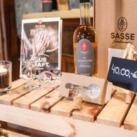 Der Münsterland-Shop oder wie wir ihn gerne nennen » #StrandHofladen «. Der ging natürlich pünktlich zur Vorweihnachtszeit mit allen regionalen Lieblingssachen an den Start. Unsere ländlich-rustikale Präsent-Holzkiste steht zum Befüllen bereit. Und natürliche jede Menge leckerer und nützlicher Input. Sie wählen, wir packen ein und verpacken. Hundertprozentiger können Sie das Münsterland nicht verschenken." Der Mensch liebt Anschaulichkeit, darum lassen wir uns ein paar Dinge vorführen. Die Genussexpertin Paula Pumpernickel hat die Münsterländische Herrencreme in ein fein balanciertes Likör-Getränk aus Schokolade, Vanille und Rum verwandelt. Sasse aus Schöppingen steuert seinen legendären Lagerkorn bei. Die Münstersche Marmeladenfaktur versüßt den Tag durch Feige, Birne, Portwein und andere niederknieenswerte Kompositionen. Vom Obsthof Korn liegen Apfelchips bei. Undsoweiter, sagen wir an dieser Stelle, denn der Appetit ist längst geweckt und die Liste wäre lang.