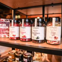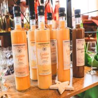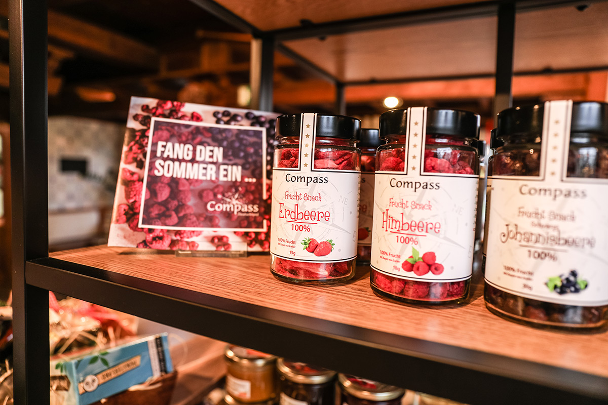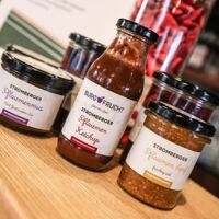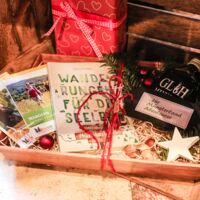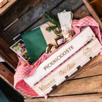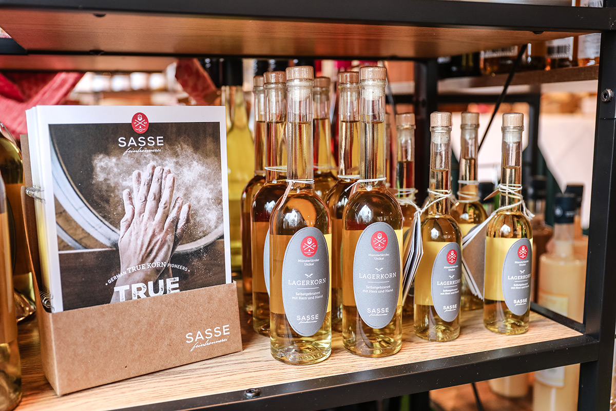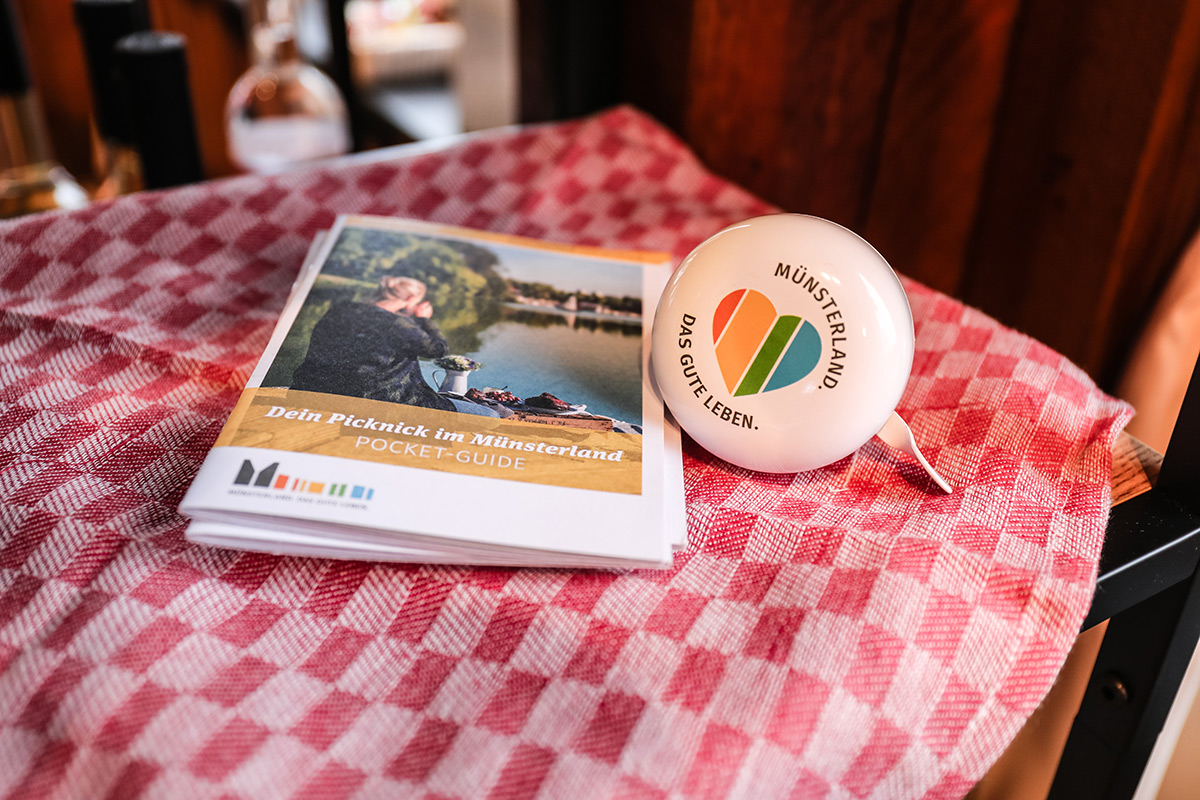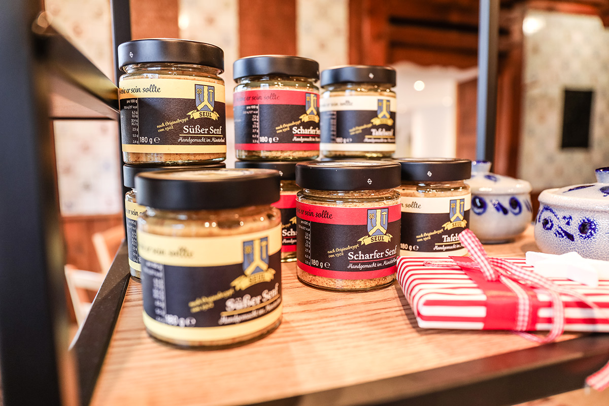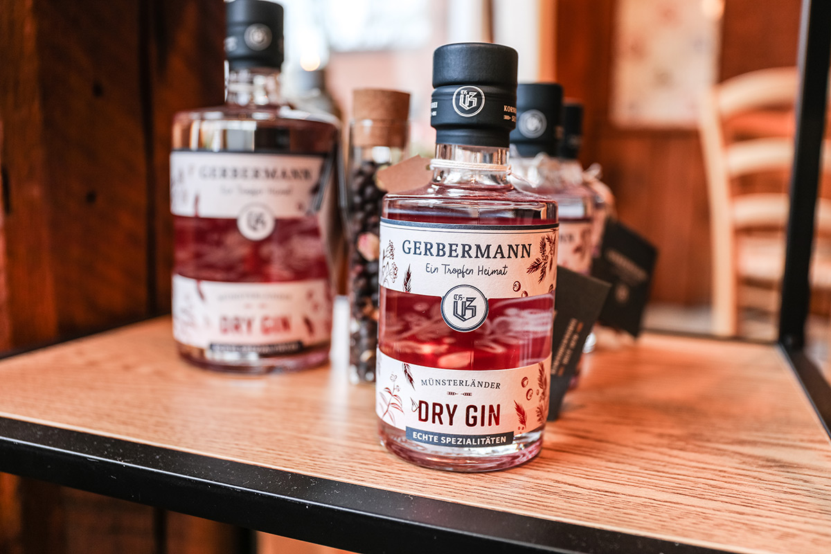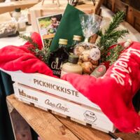 Der Münsterland-Shop oder wie wir ihn gerne nennen » #StrandHofladen «. Der ging natürlich pünktlich zur Vorweihnachtszeit mit allen regionalen Lieblingssachen an den Start. Unsere ländlich-rustikale Präsent-Holzkiste steht zum Befüllen bereit. Und natürliche jede Menge leckerer und nützlicher Input. Sie wählen, wir packen ein und verpacken. Hundertprozentiger können Sie das Münsterland nicht verschenken." Der Mensch liebt Anschaulichkeit, darum lassen wir uns ein paar Dinge vorführen. Die Genussexpertin Paula Pumpernickel hat die Münsterländische Herrencreme in ein fein balanciertes Likör-Getränk aus Schokolade, Vanille und Rum verwandelt. Sasse aus Schöppingen steuert seinen legendären Lagerkorn bei. Die Münstersche Marmeladenfaktur versüßt den Tag durch Feige, Birne, Portwein und andere niederknieenswerte Kompositionen. Vom Obsthof Korn liegen Apfelchips bei. Undsoweiter, sagen wir an dieser Stelle, denn der Appetit ist längst geweckt und die Liste wäre lang.